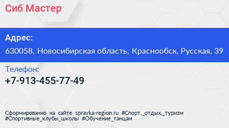Сиб-Мастер по адресу 630058, Новосибирская область, Краснообск, Русская, 39 в дальнейшем Организация, размещена в следующих категориях: