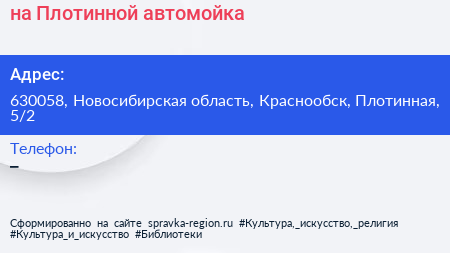 на Плотинной, автомойка по адресу 630058, Новосибирская область, Краснообск, Плотинная, 5/2 в дальнейшем Организация, размещена в следующих категориях: