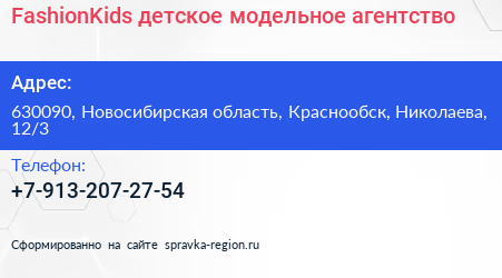 FashionKids, детское модельное агентство по адресу 630090, Новосибирская область, Краснообск, Николаева, 12/3 в дальнейшем Организация, размещена в следующих категориях: