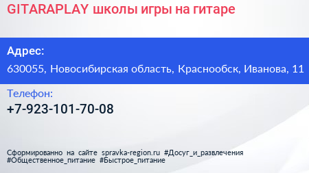 GITARAPLAY, школы игры на гитаре по адресу 630055, Новосибирская область, Краснообск, Иванова, 11 в дальнейшем Организация, размещена в следующих категориях: