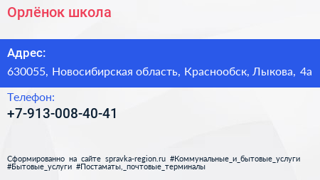 Орлёнок, школа по адресу 630055, Новосибирская область, Краснообск, Лыкова, 4а в дальнейшем Организация, размещена в следующих категориях:
