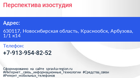 Перспектива, изостудия по адресу 630117, Новосибирская область, Краснообск, Арбузова, 1/1 к14 в дальнейшем Организация, размещена в следующих категориях: