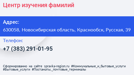 Центр изучения фамилий по адресу 630058, Новосибирская область, Краснообск, Русская, 39 в дальнейшем Организация, размещена в следующих категориях: