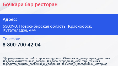 Бочкари, бар-ресторан по адресу 630090, Новосибирская область, Краснообск, Кутателадзе, 4/4 в дальнейшем Организация, размещена в следующих категориях: