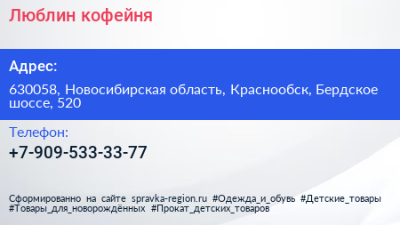 Люблин, кофейня по адресу 630058, Новосибирская область, Краснообск, Бердское шоссе, 520 в дальнейшем Организация, размещена в следующих категориях: