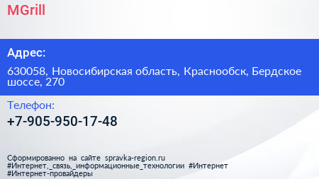 MGrill по адресу 630058, Новосибирская область, Краснообск, Бердское шоссе, 270 в дальнейшем Организация, размещена в следующих категориях: