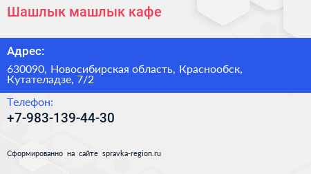 Шашлык-машлык, кафе по адресу 630090, Новосибирская область, Краснообск, Кутателадзе, 7/2 в дальнейшем Организация, размещена в следующих категориях: