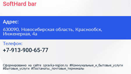 SoftHard bar по адресу 630090, Новосибирская область, Краснообск, Инженерная, 4а в дальнейшем Организация, размещена в следующих категориях: