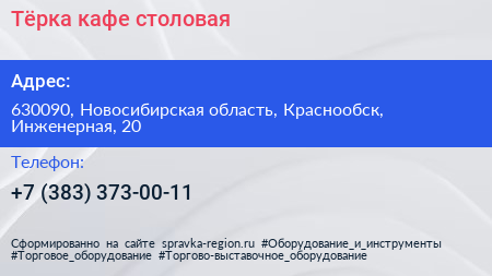 Тёрка, кафе-столовая по адресу 630090, Новосибирская область, Краснообск, Инженерная, 20 в дальнейшем Организация, размещена в следующих категориях: