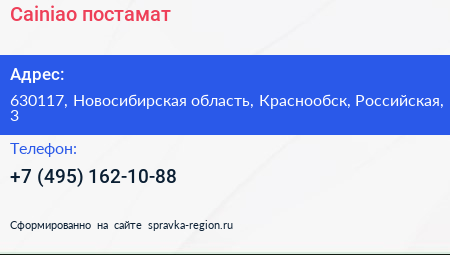 Cainiao, постамат по адресу 630117, Новосибирская область, Краснообск, Российская, 3 в дальнейшем Организация, размещена в следующих категориях: