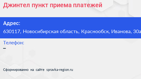 Джинтел, пункт приема платежей по адресу 630117, Новосибирская область, Краснообск, Иванова, 30а в дальнейшем Организация, размещена в следующих категориях: