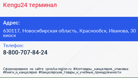 Kengu24, терминал по адресу 630117, Новосибирская область, Краснообск, Иванова, 30 киоск в дальнейшем Организация, размещена в следующих категориях: