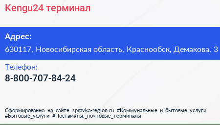 Kengu24, терминал по адресу 630117, Новосибирская область, Краснообск, Демакова, 3 в дальнейшем Организация, размещена в следующих категориях: