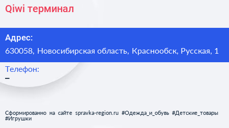 Qiwi, терминал по адресу 630058, Новосибирская область, Краснообск, Русская, 1 в дальнейшем Организация, размещена в следующих категориях: