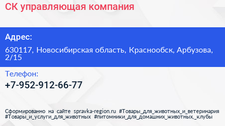 СК, управляющая компания по адресу 630117, Новосибирская область, Краснообск, Арбузова, 2/15 в дальнейшем Организация, размещена в следующих категориях: