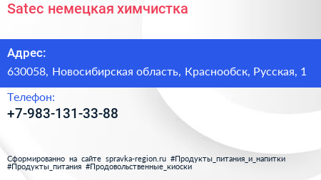 Satec, немецкая химчистка по адресу 630058, Новосибирская область, Краснообск, Русская, 1 в дальнейшем Организация, размещена в следующих категориях: