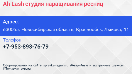 Ah.Lash, студия наращивания ресниц по адресу 630055, Новосибирская область, Краснообск, Лыкова, 11 в дальнейшем Организация, размещена в следующих категориях: