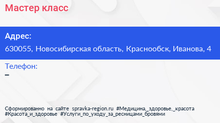 Мастер-класс по адресу 630055, Новосибирская область, Краснообск, Иванова, 4 в дальнейшем Организация, размещена в следующих категориях: