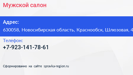 Мужской салон по адресу 630058, Новосибирская область, Краснообск, Шлюзовая, 4 в дальнейшем Организация, размещена в следующих категориях: