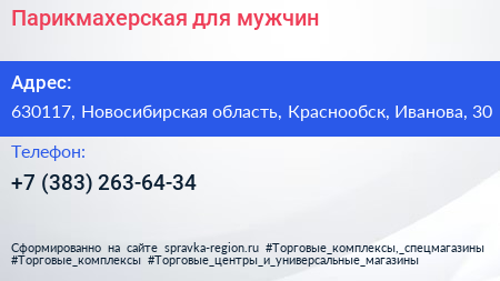 Парикмахерская для мужчин по адресу 630117, Новосибирская область, Краснообск, Иванова, 30 в дальнейшем Организация, размещена в следующих категориях: