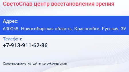 СветоСлав, центр восстановления зрения по адресу 630058, Новосибирская область, Краснообск, Русская, 39 в дальнейшем Организация, размещена в следующих категориях: