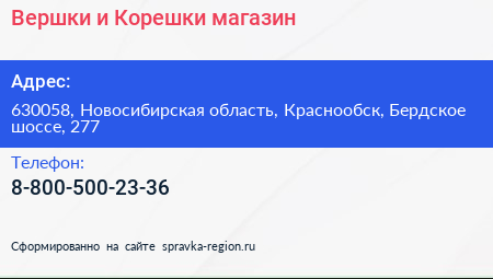 Вершки и Корешки, магазин по адресу 630058, Новосибирская область, Краснообск, Бердское шоссе, 277 в дальнейшем Организация, размещена в следующих категориях: