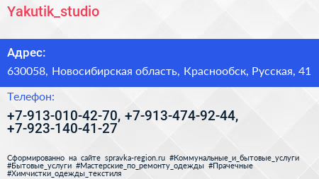 Yakutik_studio по адресу 630058, Новосибирская область, Краснообск, Русская, 41 в дальнейшем Организация, размещена в следующих категориях: