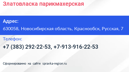 Златовласка, парикмахерская по адресу 630058, Новосибирская область, Краснообск, Русская, 7 в дальнейшем Организация, размещена в следующих категориях: