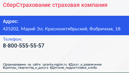 СберСтрахование, страховая компания по адресу 425202, Марий Эл, Краснооктябрьский, Фабричная, 18 в дальнейшем Организация, размещена в следующих категориях: