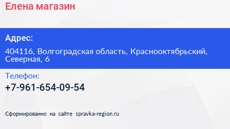 Елена, магазин по адресу 404116, Волгоградская область, Краснооктябрьский, Северная, 6 в дальнейшем Организация, размещена в следующих категориях: