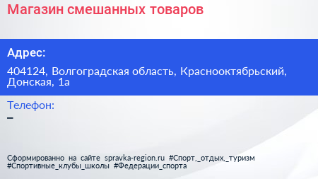 Магазин смешанных товаров по адресу 404124, Волгоградская область, Краснооктябрьский, Донская, 1а в дальнейшем Организация, размещена в следующих категориях:
