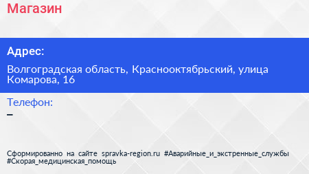 Магазин по адресу Волгоградская область, Краснооктябрьский, улица Комарова, 16 в дальнейшем Организация, размещена в следующих категориях: