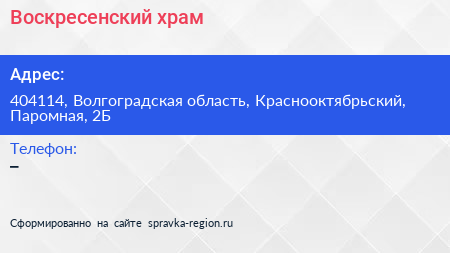 Воскресенский храм по адресу 404114, Волгоградская область, Краснооктябрьский, Паромная, 2Б в дальнейшем Организация, размещена в следующих категориях:
