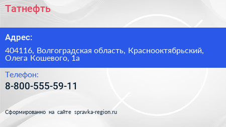 Татнефть по адресу 404116, Волгоградская область, Краснооктябрьский, Олега Кошевого, 1а в дальнейшем Организация, размещена в следующих категориях: