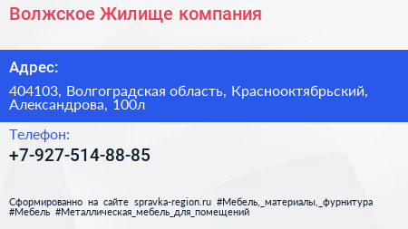 Волжское Жилище, компания по адресу 404103, Волгоградская область, Краснооктябрьский, Александрова, 100л в дальнейшем Организация, размещена в следующих категориях: