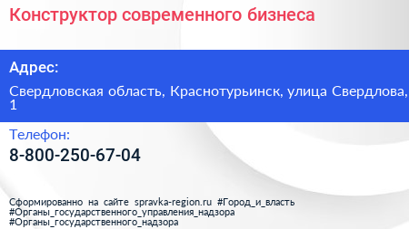 Конструктор современного бизнеса по адресу Свердловская область, Краснотурьинск, улица Свердлова, 1 в дальнейшем Организация, размещена в следующих категориях: