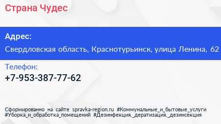 Страна Чудес по адресу Свердловская область, Краснотурьинск, улица Ленина, 62 в дальнейшем Организация, размещена в следующих категориях: