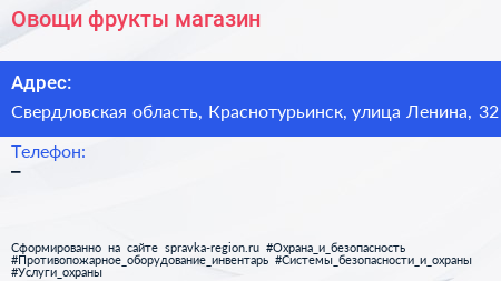 Овощи-фрукты, магазин по адресу Свердловская область, Краснотурьинск, улица Ленина, 32 в дальнейшем Организация, размещена в следующих категориях: