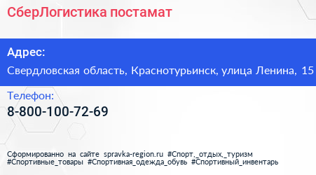СберЛогистика, постамат по адресу Свердловская область, Краснотурьинск, улица Ленина, 15 в дальнейшем Организация, размещена в следующих категориях: