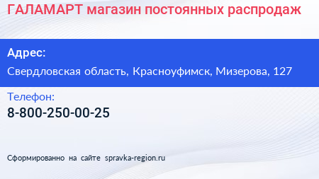 ГАЛАМАРТ, магазин постоянных распродаж по адресу Свердловская область, Красноуфимск, Мизерова, 127 в дальнейшем Организация, размещена в следующих категориях:
