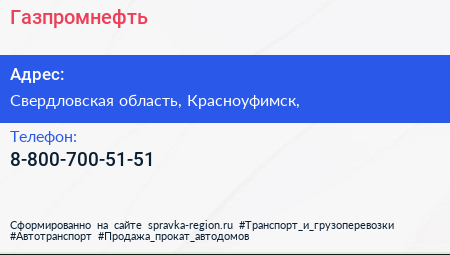 Газпромнефть по адресу Свердловская область, Красноуфимск, в дальнейшем Организация, размещена в следующих категориях: