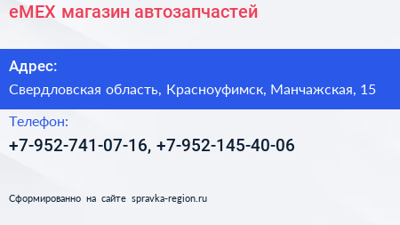 еМЕX, магазин автозапчастей по адресу Свердловская область, Красноуфимск, Манчажская, 15 в дальнейшем Организация, размещена в следующих категориях: