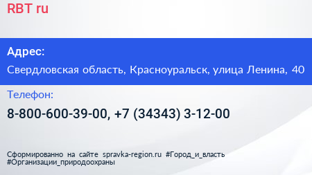 RBT.ru по адресу Свердловская область, Красноуральск, улица Ленина, 40 в дальнейшем Организация, размещена в следующих категориях: