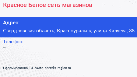 Красное & Белое, сеть магазинов по адресу Свердловская область, Красноуральск, улица Каляева, 38 в дальнейшем Организация, размещена в следующих категориях: