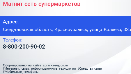 Магнит, сеть супермаркетов по адресу Свердловская область, Красноуральск, улица Каляева, 33а в дальнейшем Организация, размещена в следующих категориях:
