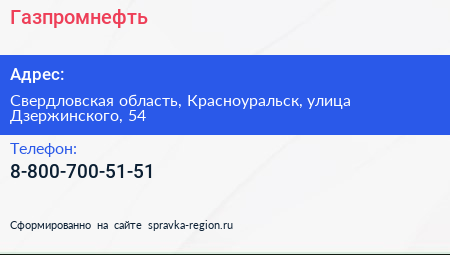 Газпромнефть по адресу Свердловская область, Красноуральск, улица Дзержинского, 54 в дальнейшем Организация, размещена в следующих категориях: