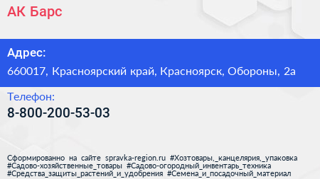 АК Барс по адресу 660017, Красноярский край, Красноярск, Обороны, 2а в дальнейшем Организация, размещена в следующих категориях: