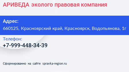 АРИВЕДА, эколого-правовая компания по адресу 660125, Красноярский край, Красноярск, Водопьянова, 1г в дальнейшем Организация, размещена в следующих категориях: