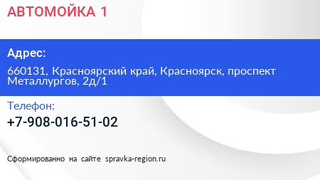 АВТОМОЙКА №1 по адресу 660131, Красноярский край, Красноярск, проспект Металлургов, 2д/1 в дальнейшем Организация, размещена в следующих категориях: