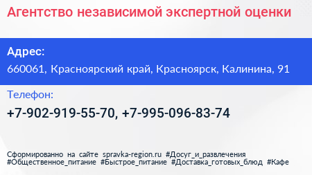 Агентство независимой экспертной оценки по адресу 660061, Красноярский край, Красноярск, Калинина, 91 в дальнейшем Организация, размещена в следующих категориях: